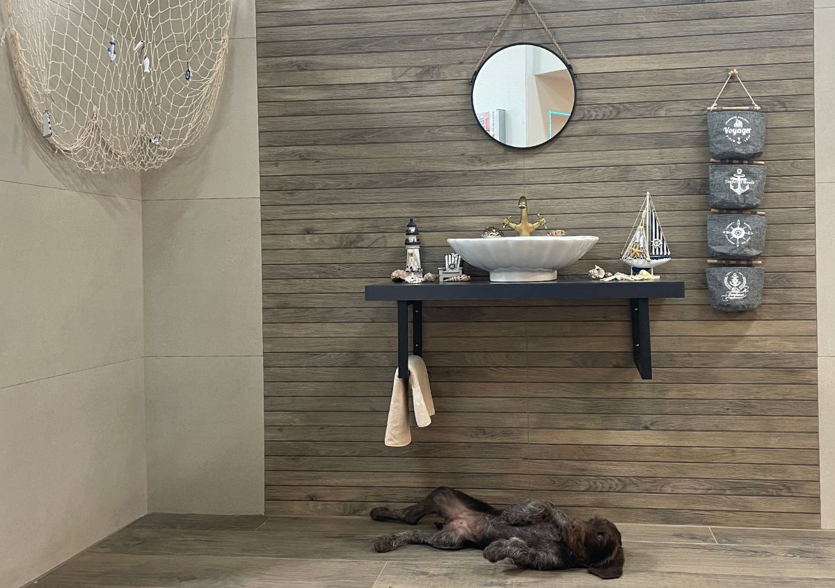 Hündin Bayla (Deutsch Drahthaar) fühlt sich auf den Fliesen Northwood Elm einfach pudelwohl!