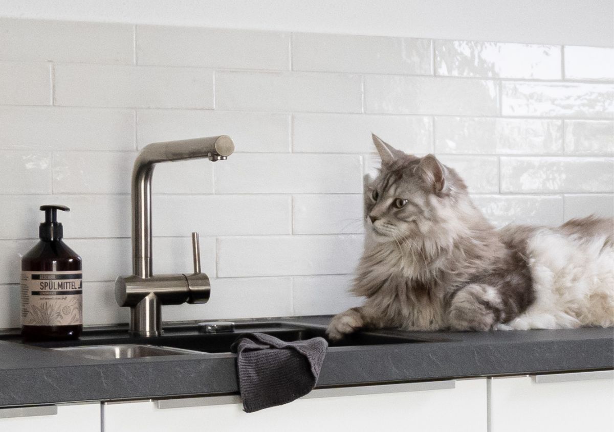 Im Alltag mit Haustieren können kleine Unfälle passieren. Verschüttetes Futter oder Urin führen zu unangenehmen Gerüchen, wenn der Boden nicht widerstandsfähig ist. Fliesen aus Keramik und insbesondere Feinsteinzeug bieten den Vorteil einer glatten Oberfläche, die schnell und einfach zu reinigen ist. Im Gegensatz dazu sind z.B. Teppichböden anfällig für Flecken und Gerüche. Auch natürliche Holzböden wie Echtholzparkett oder Holzdielen sind anfällig gegenüber Feuchtigkeit, da Nässe zu Schwellungen oder Verziehen des Holzes führen kann. Ähnlich verhält es sich mit Natursteinböden: Echter Marmor oder Schiefer reagieren empfindlich auf Nässe und Säure. Tierurin oder verschüttete Flüssigkeiten können das Gestein angreifen und dauerhafte Flecken verursachen.