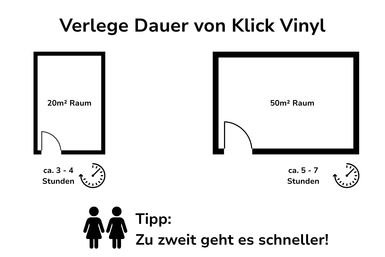 Die Dauer hängt von der Verlegeart, Raumgröße und Erfahrung ab: