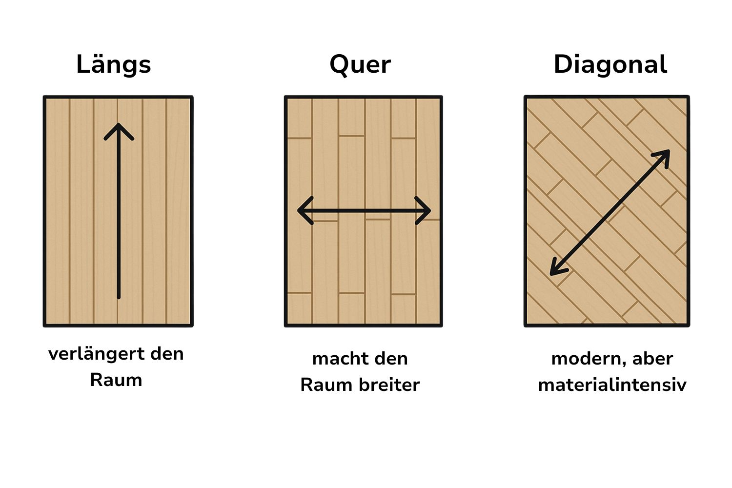 Die Verlegerichtung beeinflusst die Raumwirkung und sollte wohlüberlegt sein.