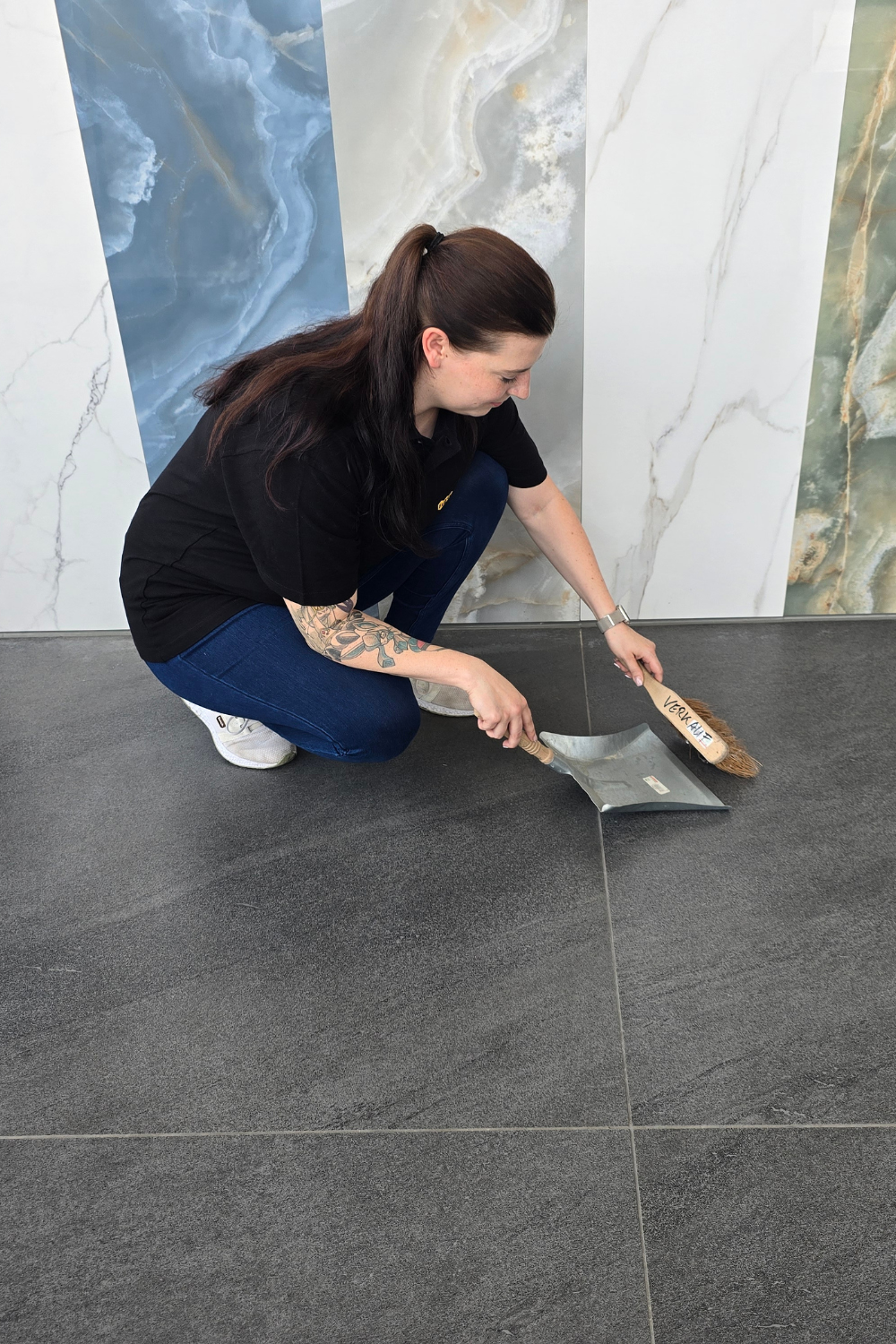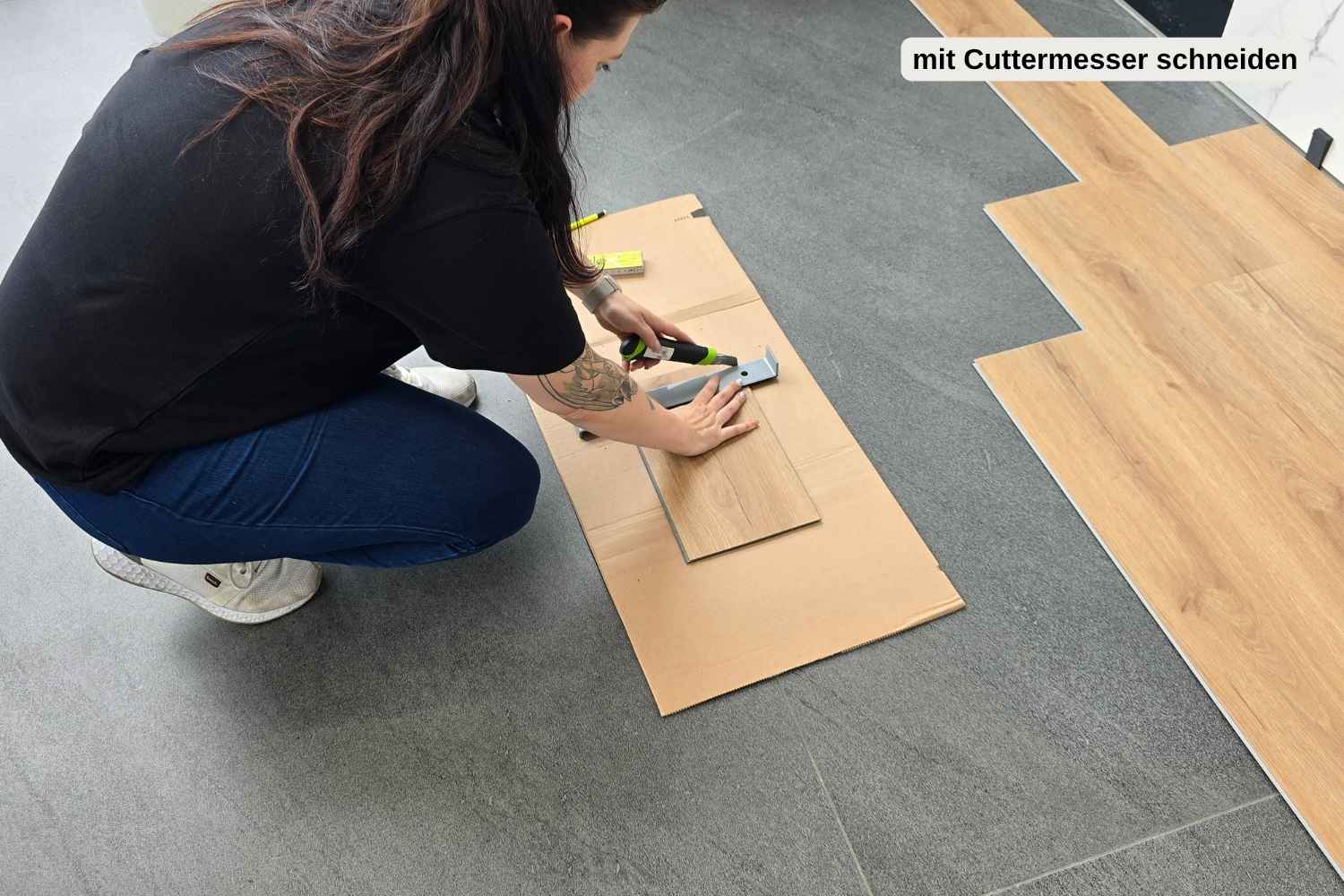 - Vinylplatten oder Bahnen passgenau einlegen und fest andrücken.
