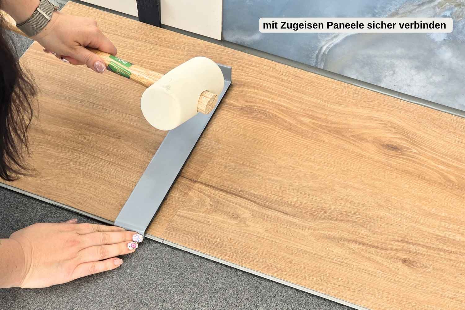 - Schlagklotz oder Zugeisen verwenden, um die Paneele sicher zu verbinden.