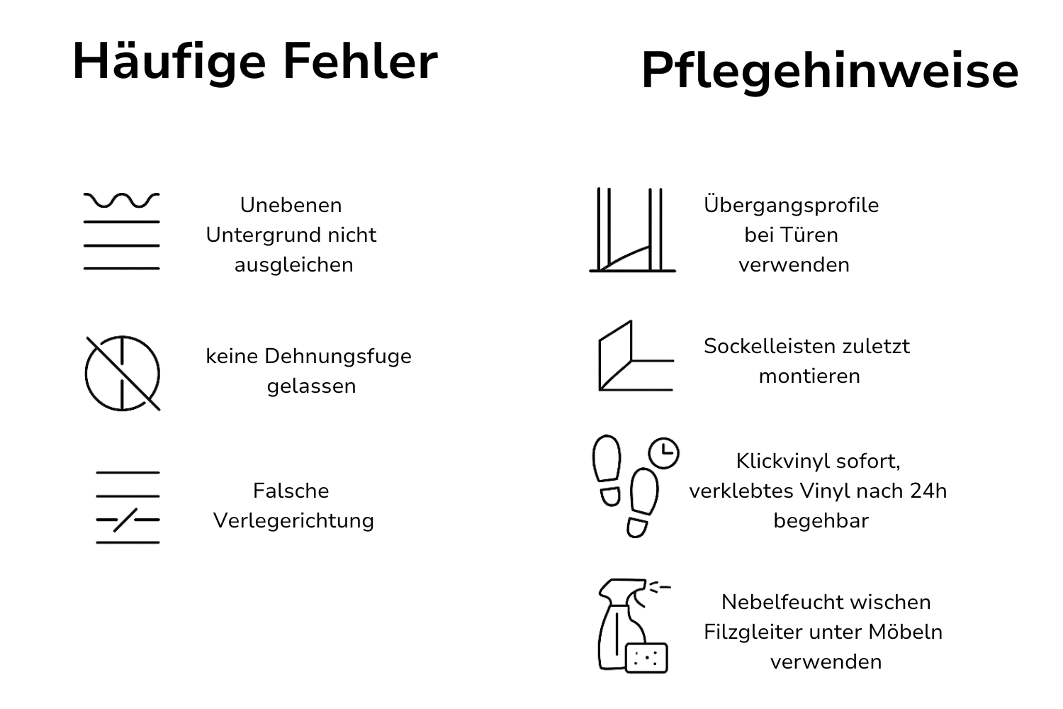 - Dehnungsfugen vergessen: Vinyl dehnt sich aus, daher 5 bis 10 mm Rand lassen.