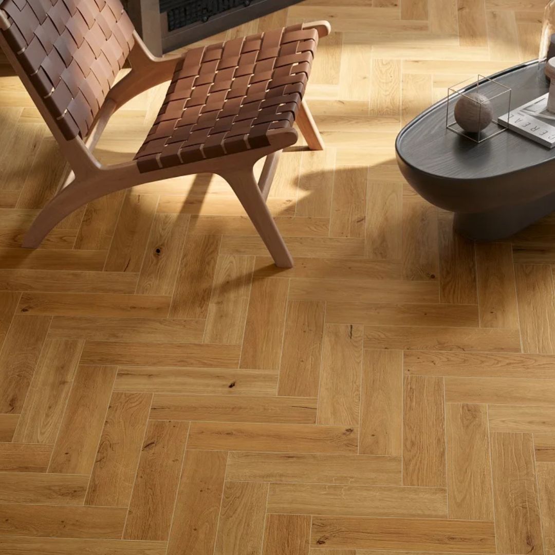 Foto: Fliesen in Holzoptik "i Roveri Rovere Intenso Fischgrät"